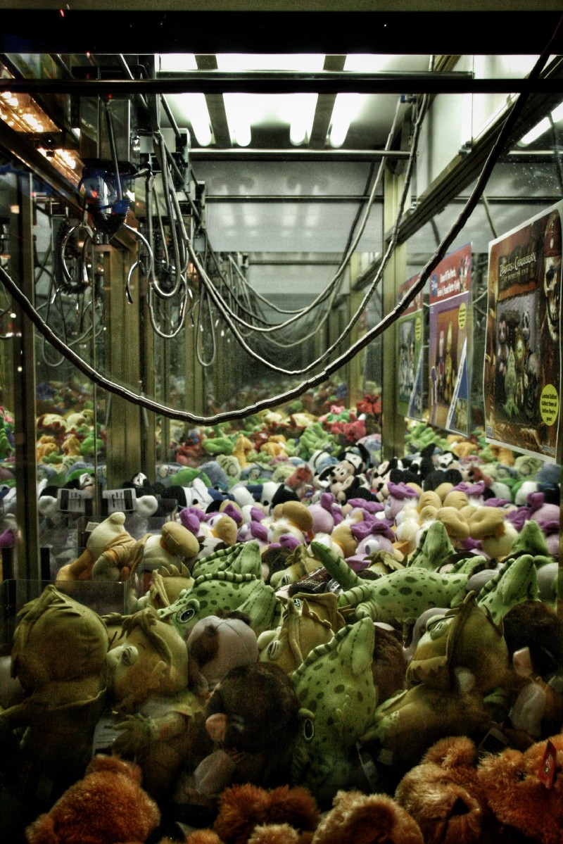 A spider grab is a big version of those claws. It’s attached to a crane, and it’s almost as effective as the little claw in the game when it comes to picking up piles of loose steel scrap. That meant that, in practice, big lumps of steel were falling around us as we painted.